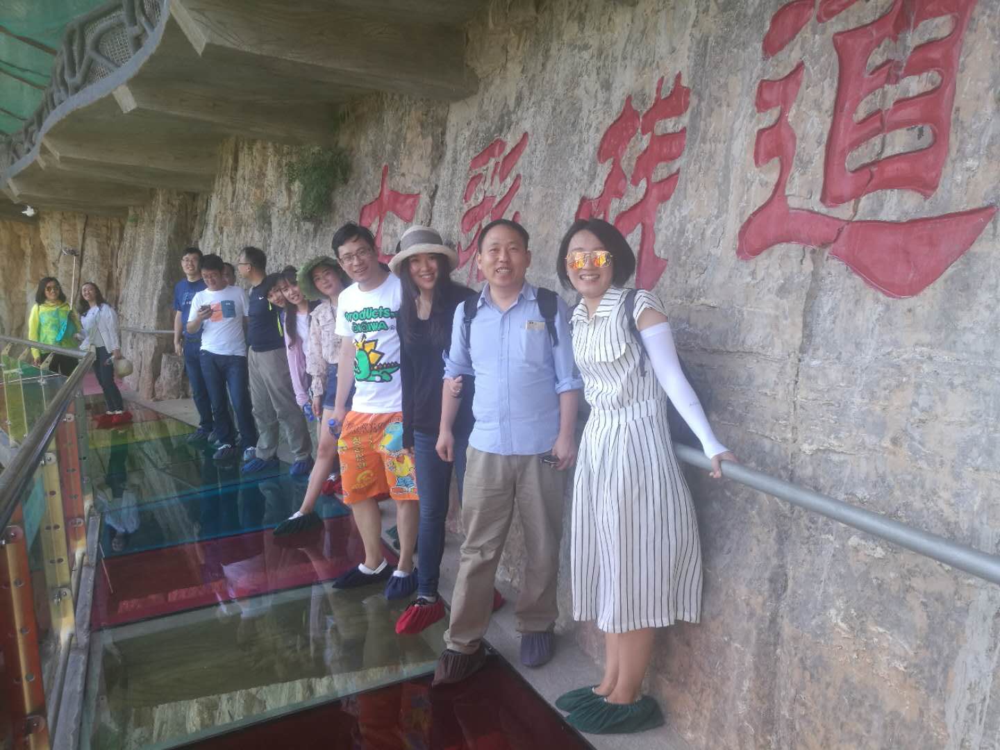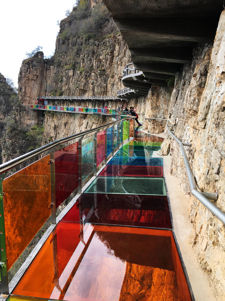 (豐盛的農(nóng)家菜) 團(tuán)建活動part 2:挑戰(zhàn)七彩玻璃棧道 吃過午飯,一行人乘車去往東湖港。東湖港的玻璃棧道是七彩的,這是國內(nèi)首家“七彩玻璃棧道”,挑戰(zhàn)區(qū)全長1200米,其中七彩玻璃128米,高差600余米。走在玻璃棧道上,猶如踩著一條長長的彩虹橋,驚險(xiǎn)刺激而又不失浪漫夢幻!