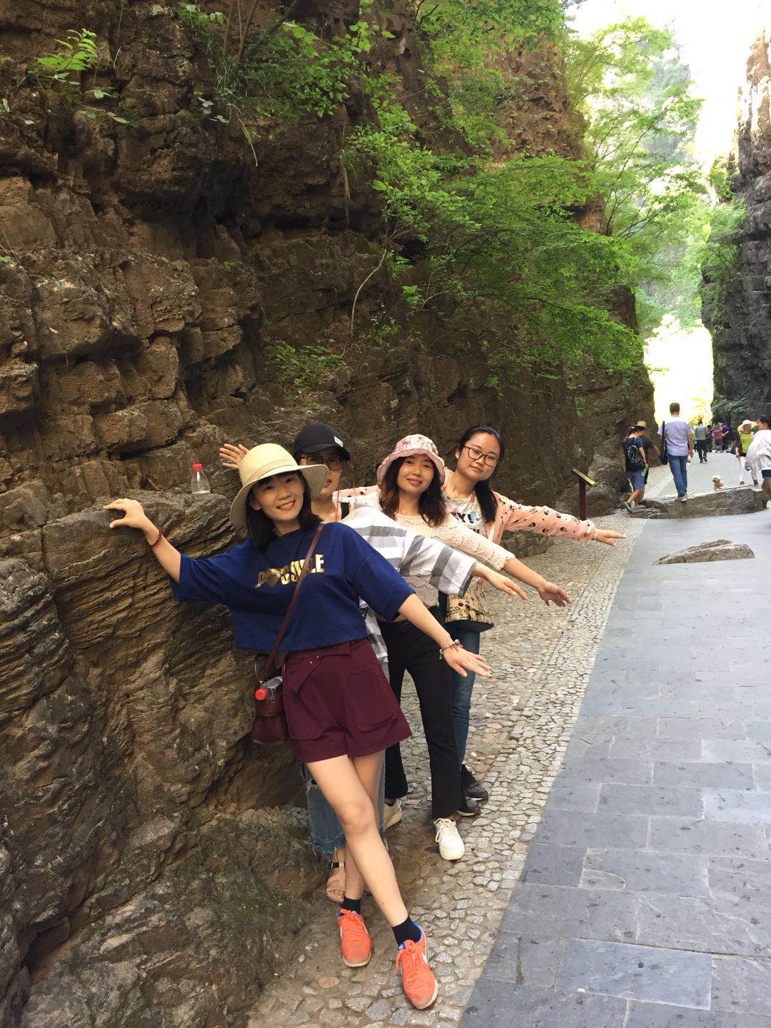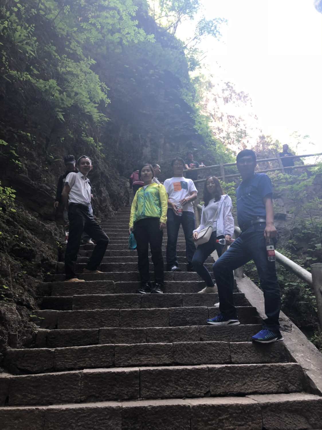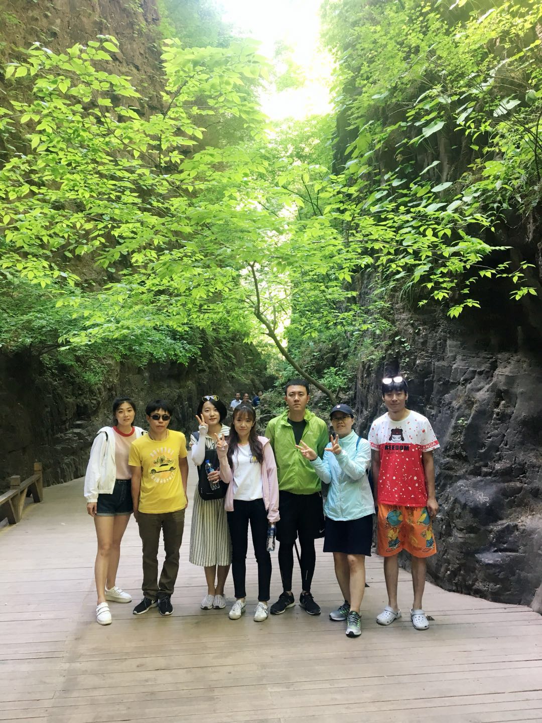 團(tuán)建活動part 4:游覽“天下第一峽” 團(tuán)建第二天我們要去到的是被譽(yù)為“天下第一峽”的百里峽景區(qū),聽聞百里峽天梯有三千余階,可是嚇?biāo)馈皩殞殏儭蹦?,幸好?jīng)過一夜的休息,大家精力已恢復(fù)大半。 走在狹窄的峽谷中,駐足而望,兩側(cè)聳然屹立的翠色絕壁,頭頂上若隱若現(xiàn)的一線天光,遠(yuǎn)處山巔的藍(lán)天白云,腳下忽左忽右的溪流……若不是那彩色纜車過于美好,“小芯”肯定是要徒步登上山頂?shù)?!沒錯,“小芯”真的是被纜車“色誘”過去的?。。?/span>