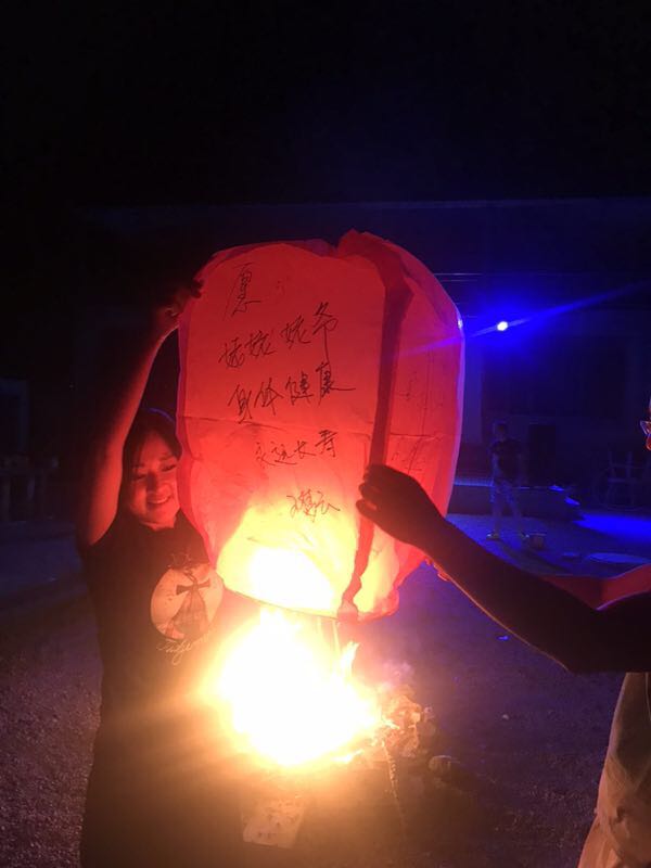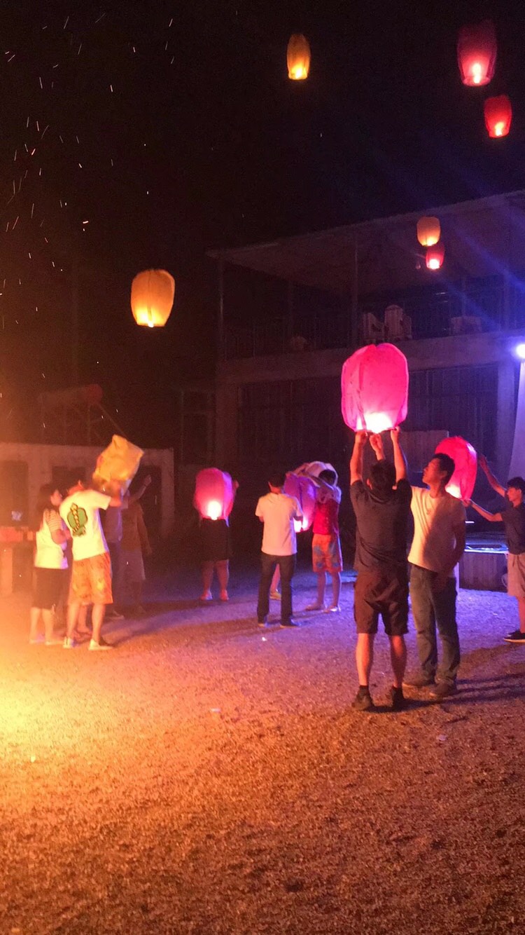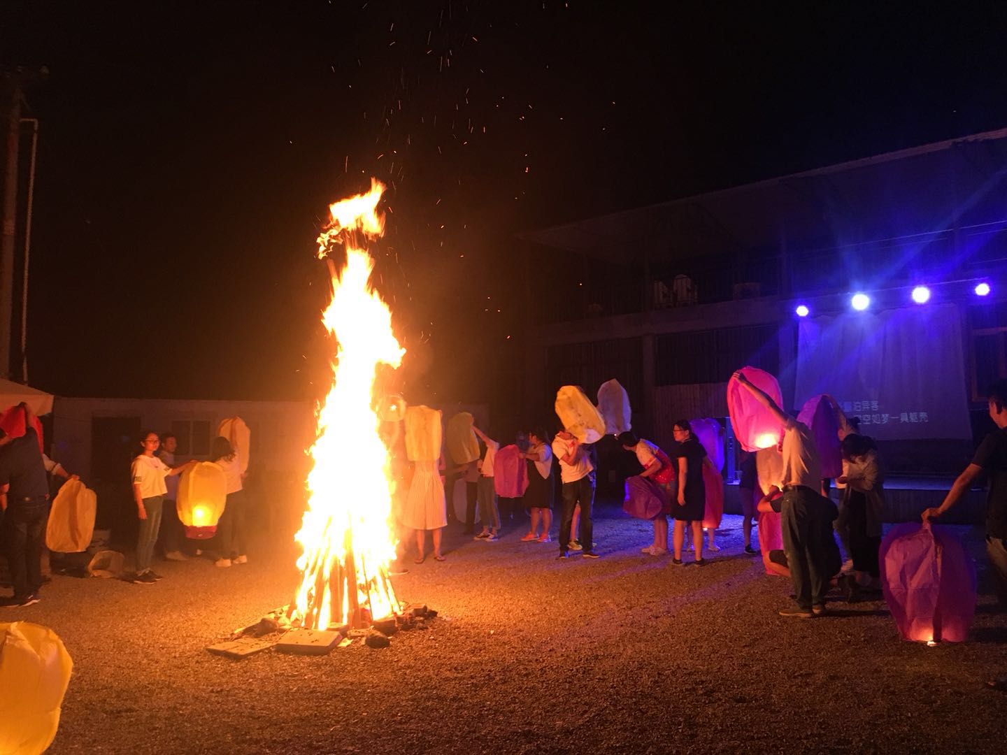 走過驚險(xiǎn)刺激的玻璃棧道,回去吃個(gè)晚飯壓壓驚。 團(tuán)建活動part 3:篝火晚會 篝火晚會可是本次團(tuán)建中“小芯”最期待的環(huán)節(jié)呢!大家圍坐在農(nóng)家小院,點(diǎn)燃篝火,伴著美妙的音樂,放飛寫滿自己心愿的孔明燈。