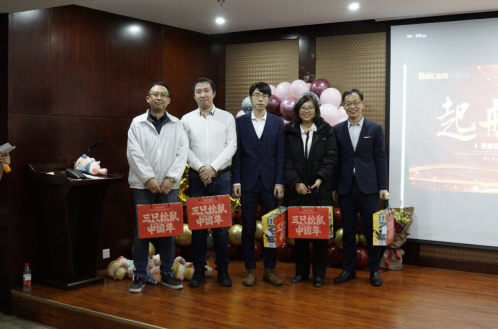 最佳團隊獎(二):臨床部——張軒;屈彬彬;高亞平;楊玲玲 隨后,全場響起了生日祝福歌,主持人邀請百康芯1月份壽星們上臺,各位壽星小伙伴們圍在蛋糕前,雙手合十,許下了她們的新年與生日愿望,百康芯全體小伙伴們?yōu)楦魑猾I上了最真誠的祝福。