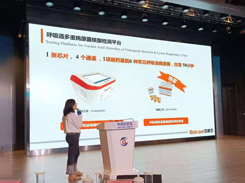 中關(guān)村論壇國際技術(shù)交易大會(huì)(新技術(shù)新產(chǎn)品首發(fā)與推薦大會(huì))上,百康芯市場總監(jiān)白雅麗女士帶來了《國內(nèi)首款針對(duì)住院患者的呼吸道多病原核酸檢測產(chǎn)品》報(bào)告,詳細(xì)講述了該產(chǎn)品可實(shí)現(xiàn)一次加樣多指標(biāo)并行檢測,以更加簡捷的方法和更短的檢測時(shí)間對(duì)多種病原體進(jìn)行檢測、分析和報(bào)告。為臨床醫(yī)生提供快速而準(zhǔn)確的檢測結(jié)果,減少病人等待的窗口期和治療周期,為臨床經(jīng)驗(yàn)用藥提供科學(xué)依據(jù)。 ![]() ![]()