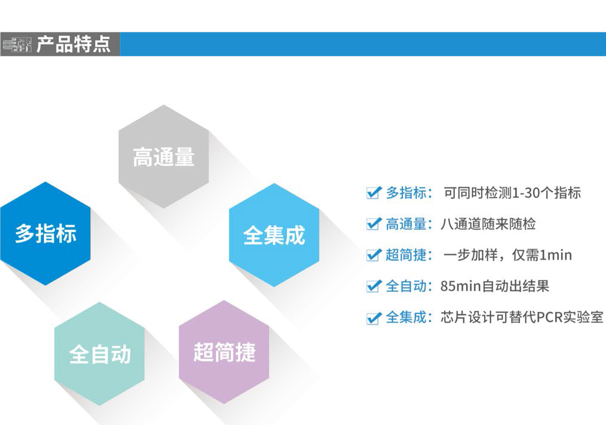 Onestart-1000全集成微流控芯片核酸檢測系統(tǒng)將復(fù)雜樣品破碎技術(shù)、磁珠核酸提取技術(shù)、微流控芯片PCR技術(shù)三大技術(shù)全集成在一起,可以一次對1-60種常見致病菌及其耐藥分型進(jìn)行快速檢測(1.5小時內(nèi)),解決了傳統(tǒng)病原體培養(yǎng)法手工操作繁瑣、周期長、檢出率低等問題,對傳染病檢測、食品安全監(jiān)控、反恐監(jiān)測有著重要意義。系統(tǒng)可鏈接物聯(lián)網(wǎng),自動上傳檢測數(shù)據(jù),實現(xiàn)樣本的在線監(jiān)測、分析、預(yù)警和溯源。
